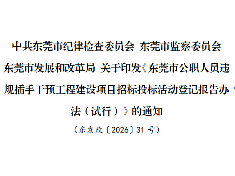 中共东莞市纪律检查委员会东莞市监察委员会东莞市发展和改革局关于印发《东莞市公职人员违规插手干预工程建设项目招标投标活动登记报告办法(试行)》的通知(东发改[2026]31号)